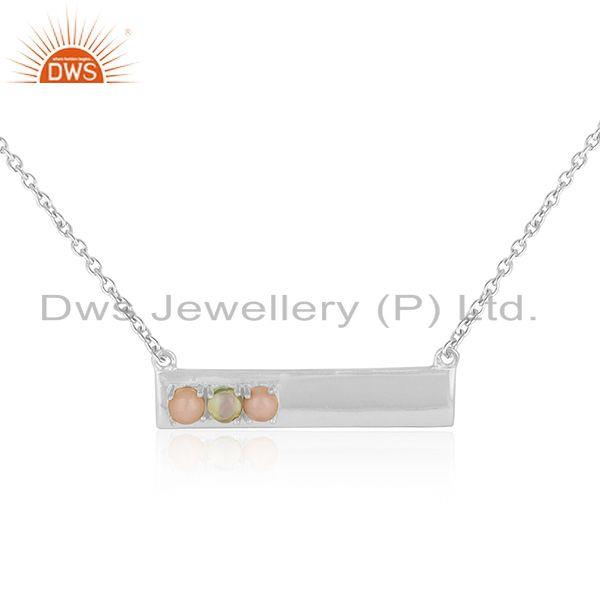Handmade Sterling Silver Bars Necklace With Pink And Ethiopian Opal