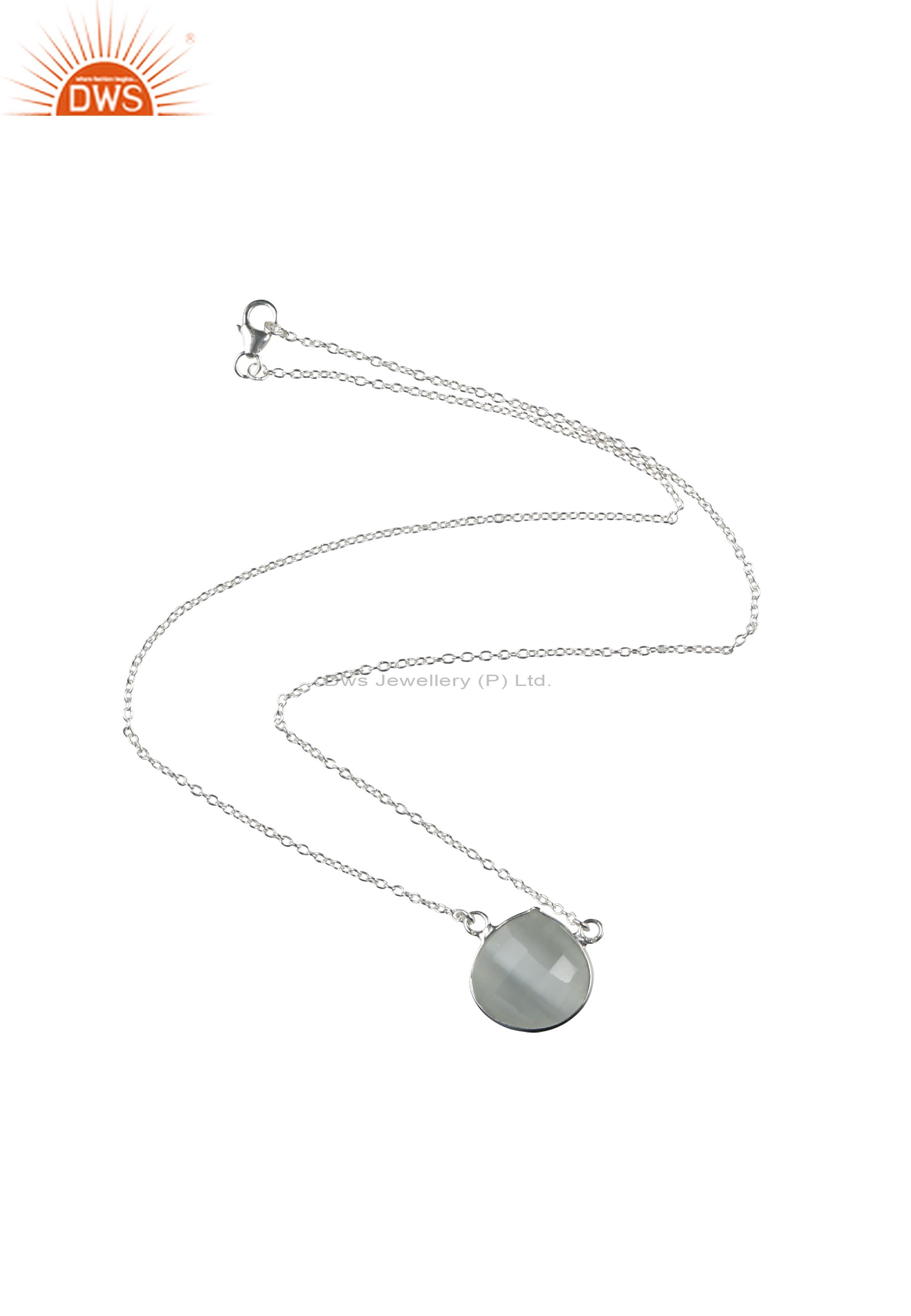 Handmade Sterling Silver Faceted White Moonstone Bezel Pendant Chain Necklace