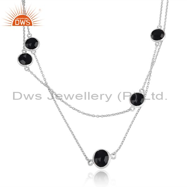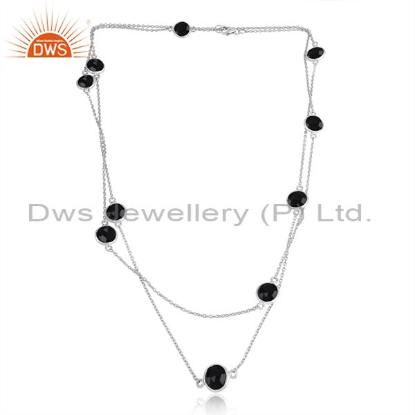 Handmade Sterling Silver Long Necklace With Black Onyx