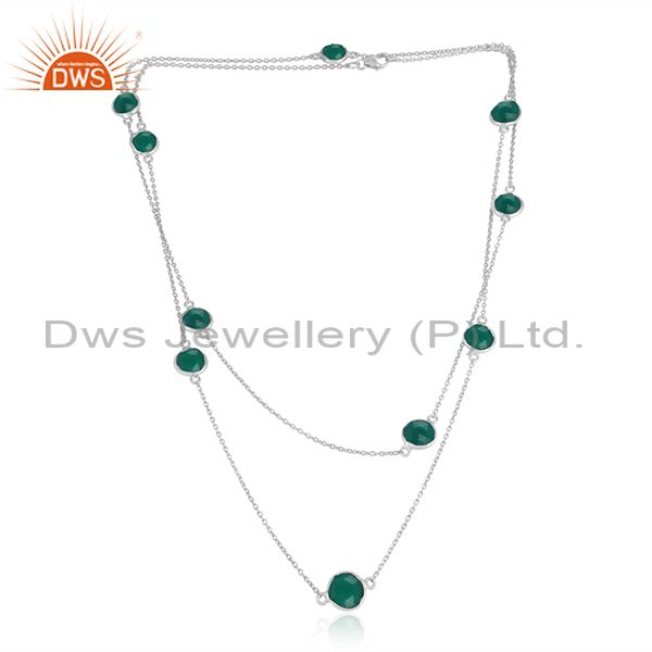 Handmade Sterling Silver Long Necklace With Green Onyx