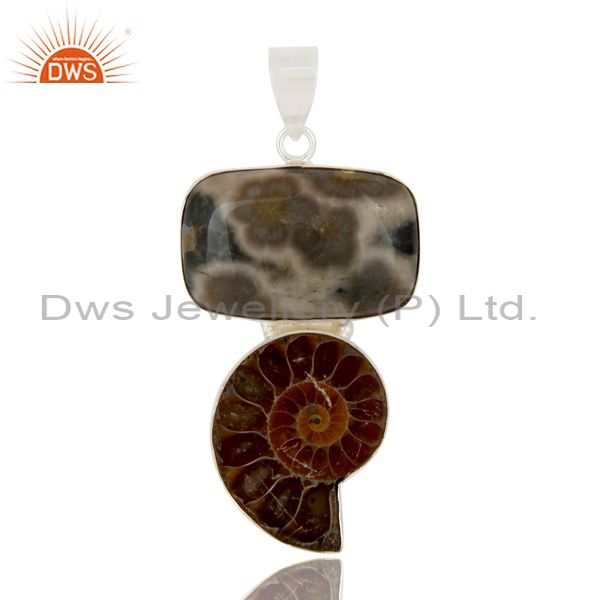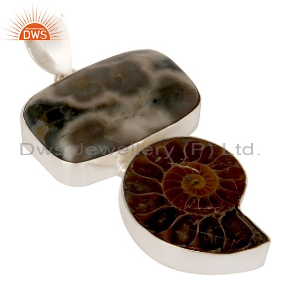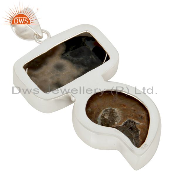 Handmade Sterling Silver Ocean Jasper And Ammonite Bezel Set Pendant
