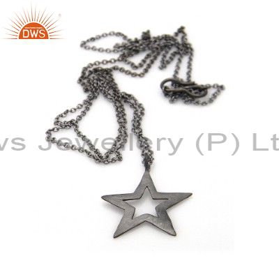 Handmade Sterling Silver Oxidized Cutout Star Charms Pendant Chain Necklace