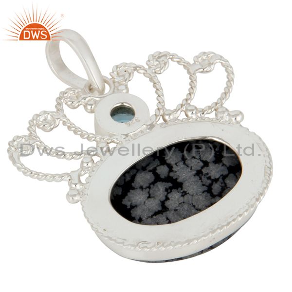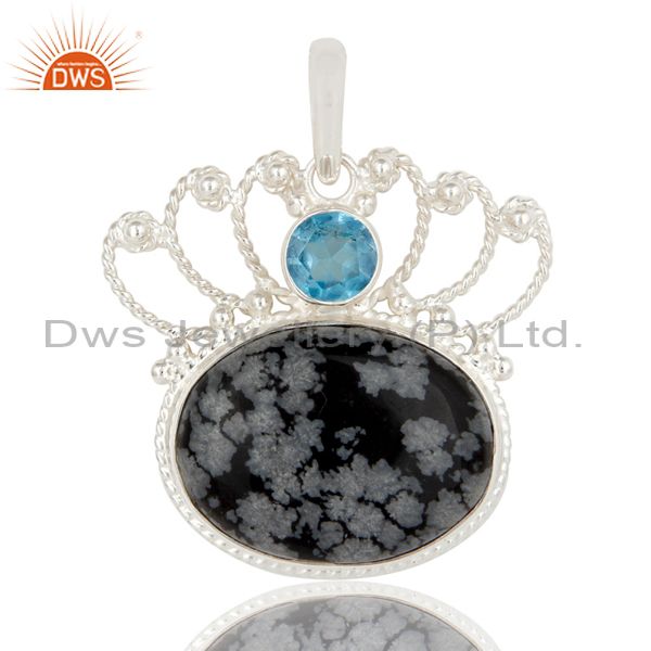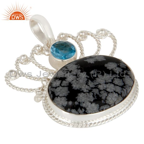Handmade Sterling Silver Snowflake Obsidian And Blue Topaz Designer Pendant