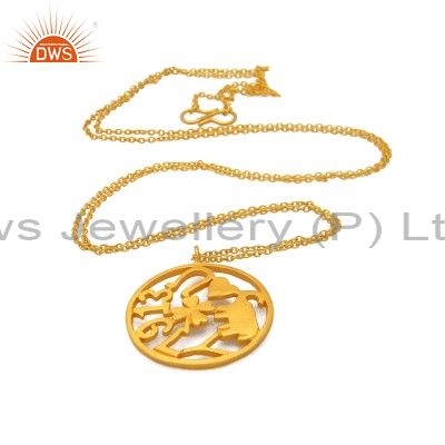 Handmade Sterling Silver With 22K Yellow Gold Plated Pendant With Chain Necklace
