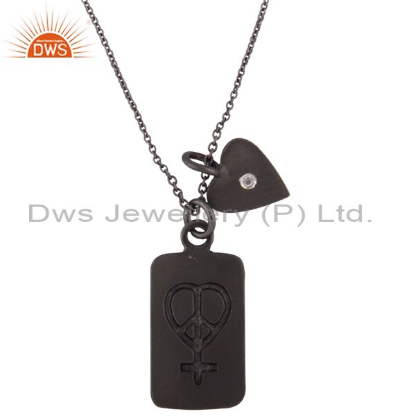Handmade Sterling Silver With Oxidized White Topaz Heart Pendant With Chain