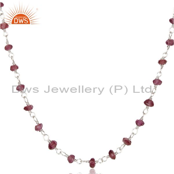 Handmade White Rhodium 925 Sterling Silver Amethyst Beads Necklace Jewelry