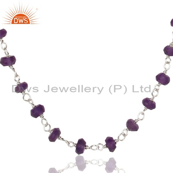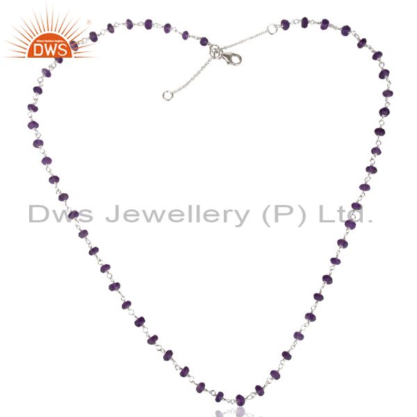 Handmade White Rhodium 925 Sterling Silver Amethyst Gemstone Beads Necklace