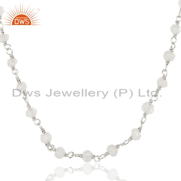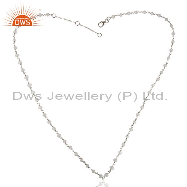 Handmade White Rhodium 925 Sterling Silver Crystal Quartz Beads Necklace Jewelry