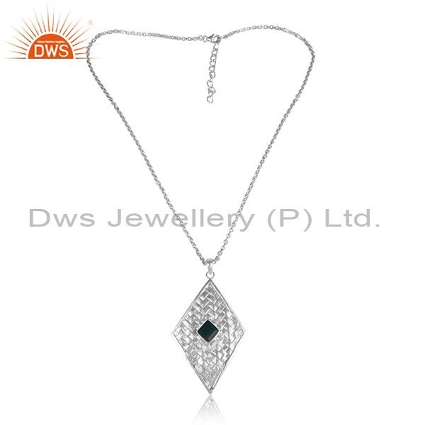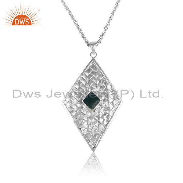 Handmade Woven Green Onyx Fine 925 Silver Pendant And Chain