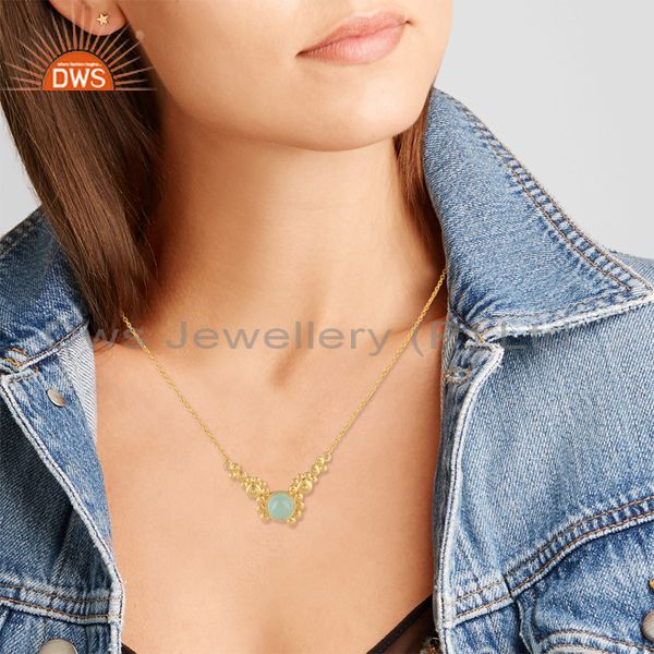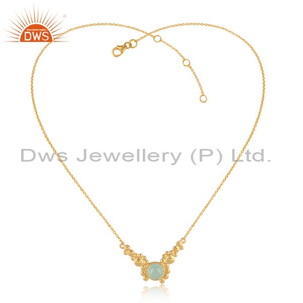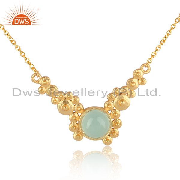 Handmade Zig Zag Granule Aqua Chalcedony Necklace In Gold On Silver