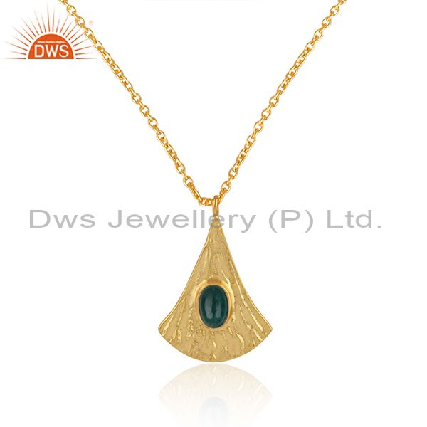 Handtextured Gold On Silver 925 Dyed Emerald Chain Pendant