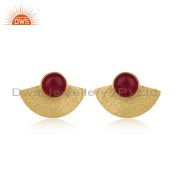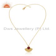 Handtextured Gold On Silver 925 Dyed Ruby Chain Pendant
