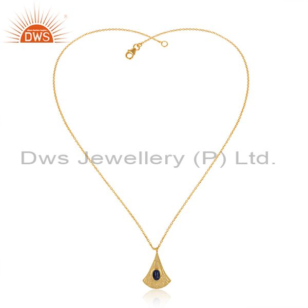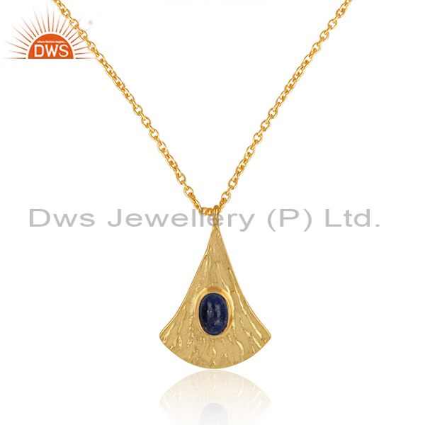 Handtextured Gold On Silver 925 Lapis Chain Pendant