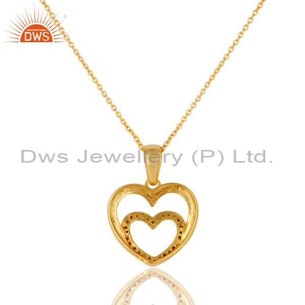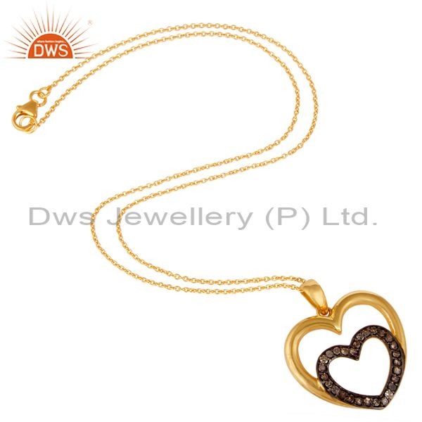 Heart Shape Diamond and 18K Gold Plated Sterling Silver Pendant Necklace