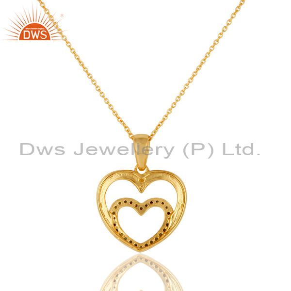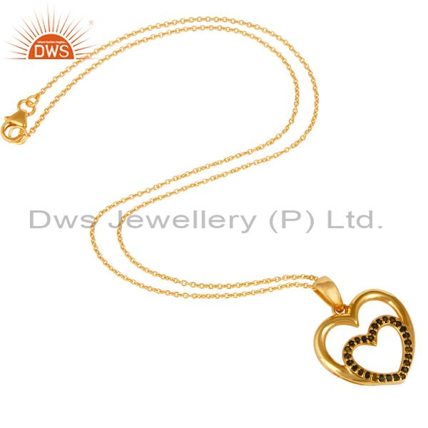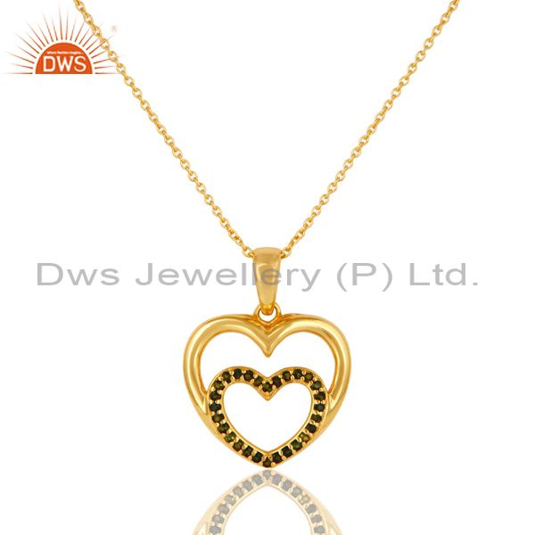 Heart Shape Green Tourmaline 18K Gold Plated Sterling Silver Pendant Necklace