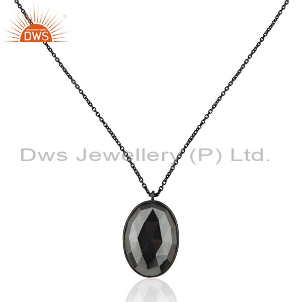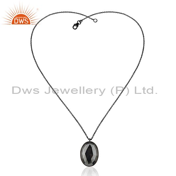 Hematite Gemstone Black Rhodium Plated 925 Silver Chain Pendant Supplier India