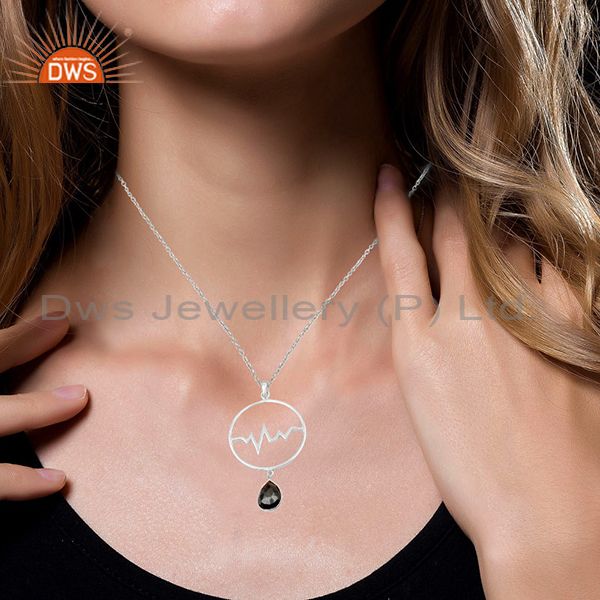 Hematite Heartbeat Round Shape Designer Silver Wholesale Pendent