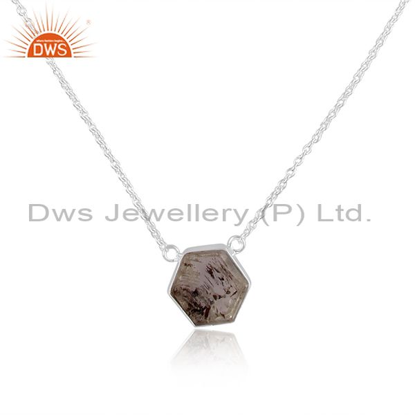 Herkimer Diamond Coin Set Pendant And Fine 925 Silver Chain