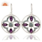 High Quality Solid 925 Sterling Silver Amethyst And Blue Topaz Gemstone Pendant