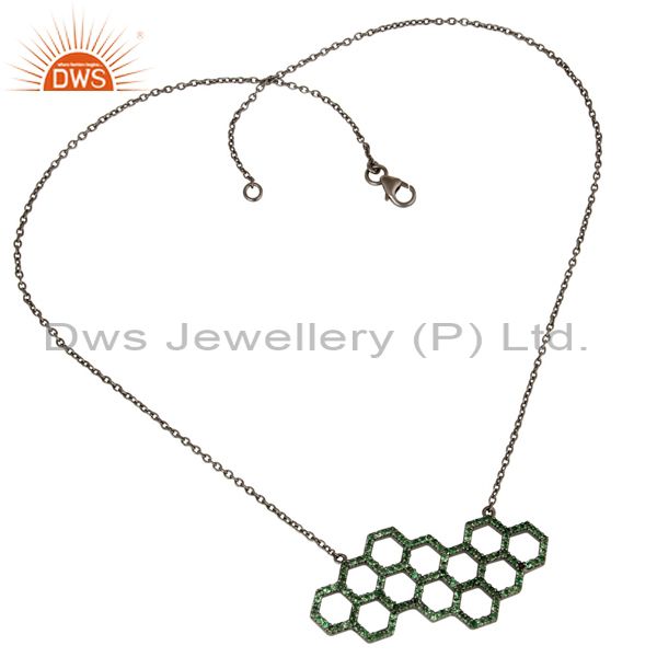 Hollow Out Hole Tsavourite Round Oxidized Sterling Silver Chain Pendant Necklace