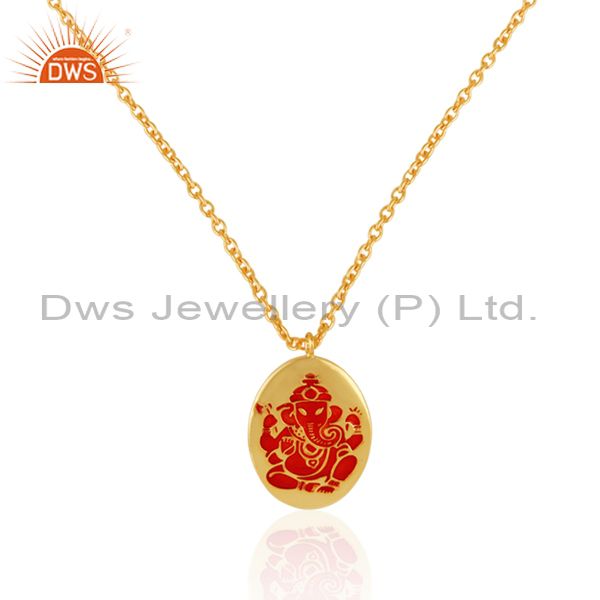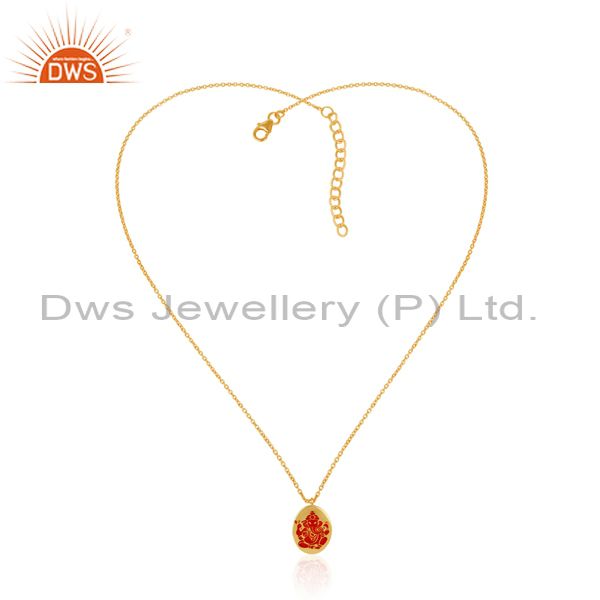 Holy Ganesha Necklace In Yellow Gold On Silver 925 And Red Enamel
