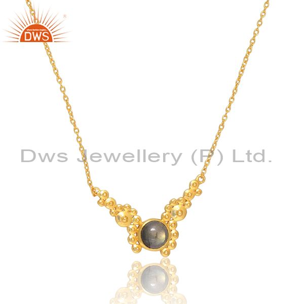 Hot Labradorite Cabushion Round Pendant And Silver Chain