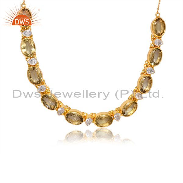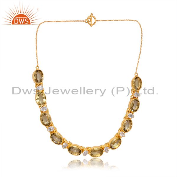 Hot Lemon Topaz Oval Cut Necklace With Pendant Silver Gold