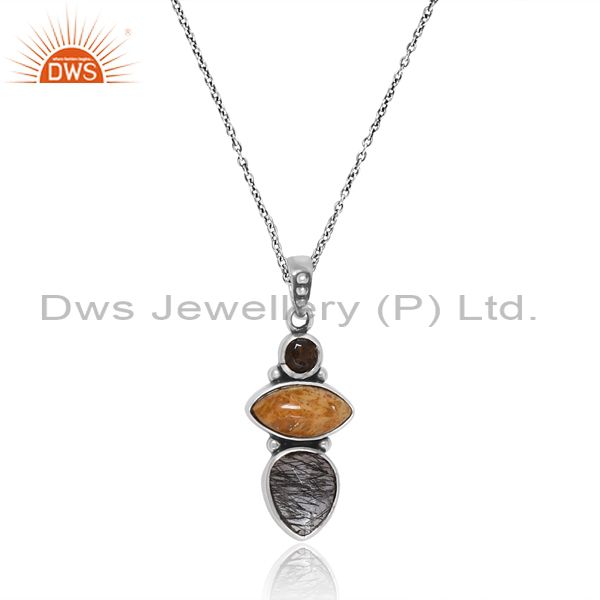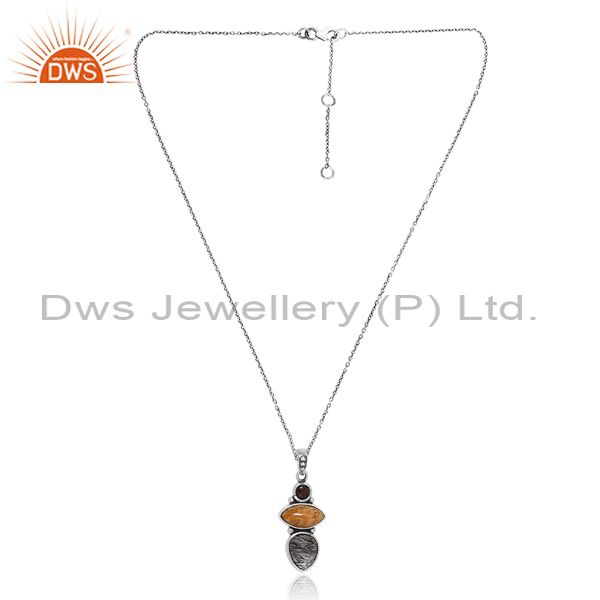 Hot Silver Necklace For Women With Black Rutile Checker Drop