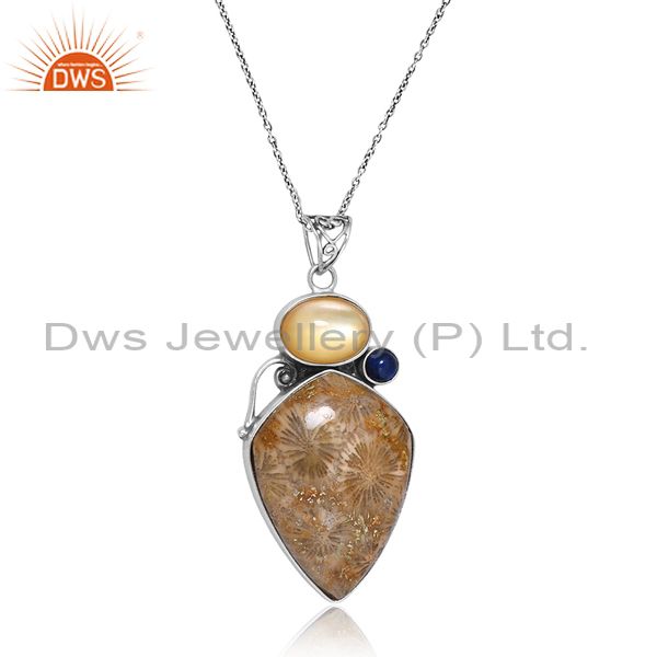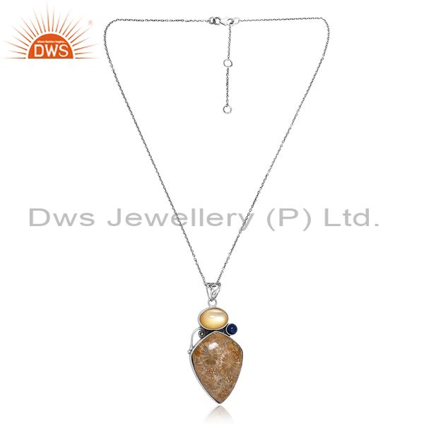 Hot Silver Necklace For Women With Yellow Crystal Cabushion