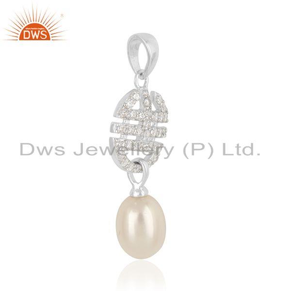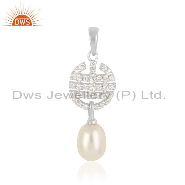 Indian Designer 925 Sterling Silver Natural Pearl Gemstone Pendant