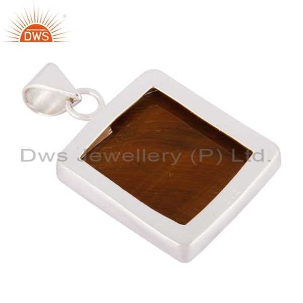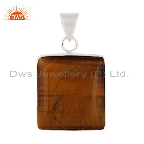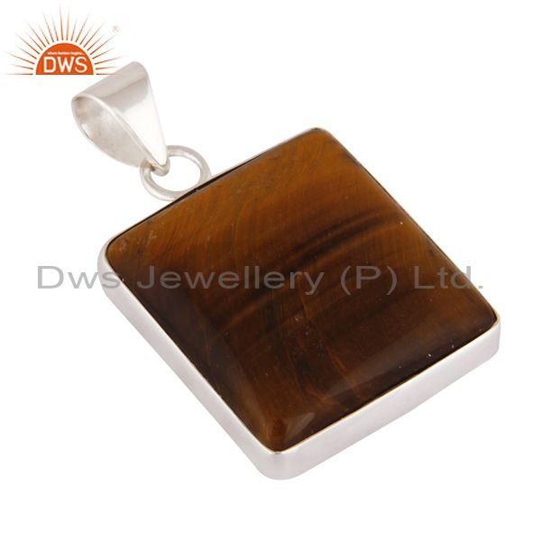 Indian Handcrafted Solid 925 Sterling Silver Natural Tiger Eye Gemstone Pendant