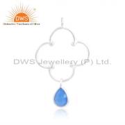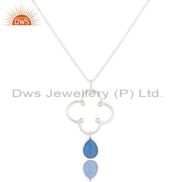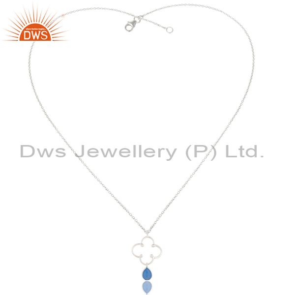 Indian Handmade Solid Sterling Silver Dyed Chalcedony Bezel Set Chain Pendant