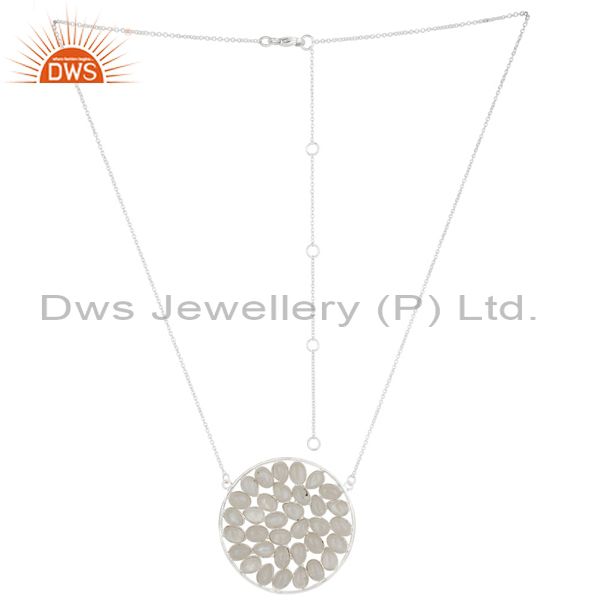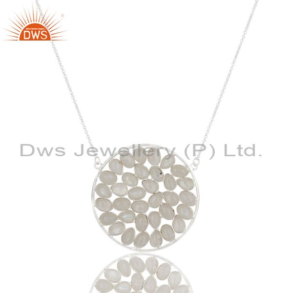 Indian Round Handmade Solid 925 Sterling Silver Rainbow Moonstone Chain Pendant