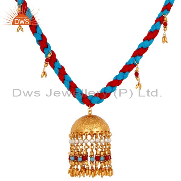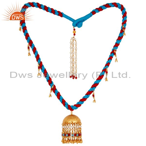 Indian Traditional Turquoise Coral And White Pearl 18K Gold Plated Necklace