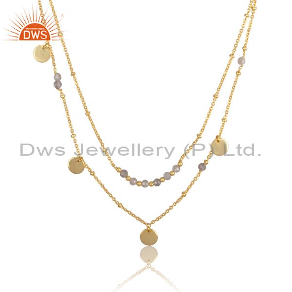 Labradorite And Round Charms Set Brass Gold Fancy Necklace