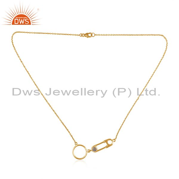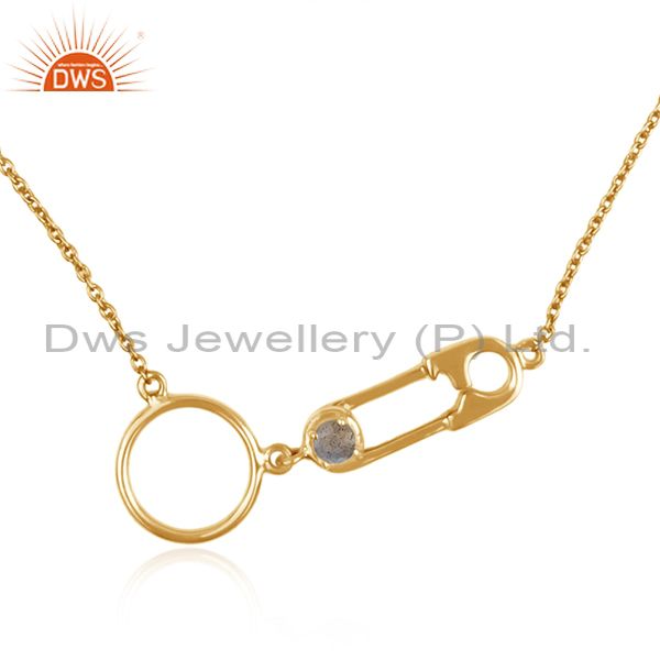Labradorite Gemstone Safety Pin 18k Gold Plated Silver Necklaces