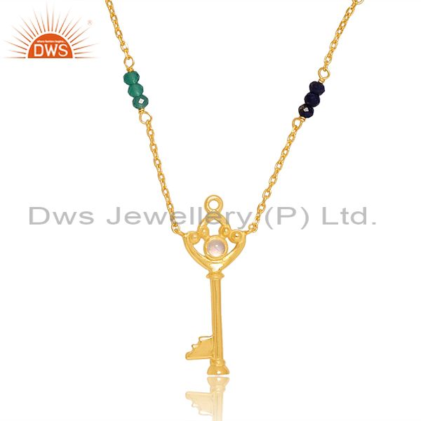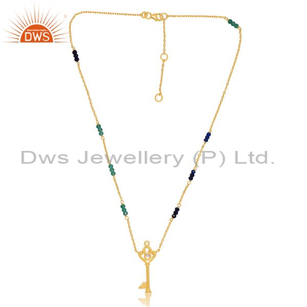 Lapis, Green Onyx On 18K Gold Silver Pendant & Necklace Set