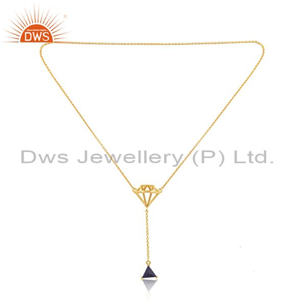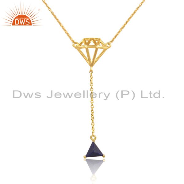 Lapis Lazuli Gemstone Diamond Shape 925 Silver Gold Plated Necklace