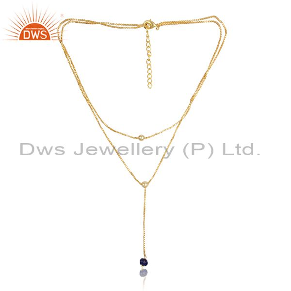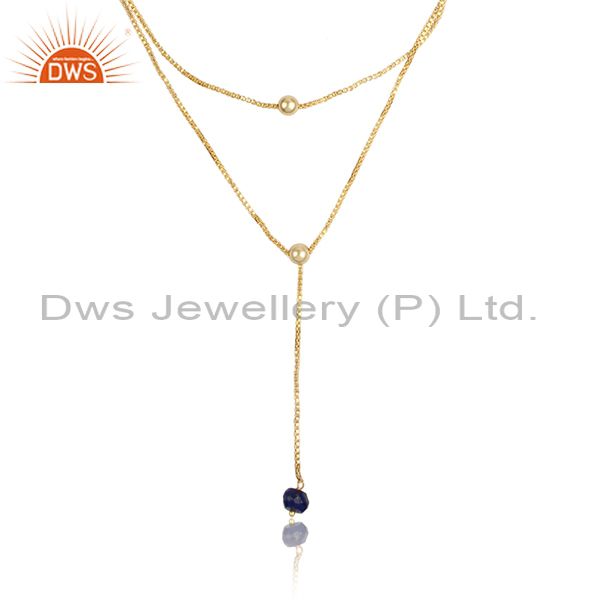 Lapis Set Brass Gold Multi Chain Designer Lariat Necklace