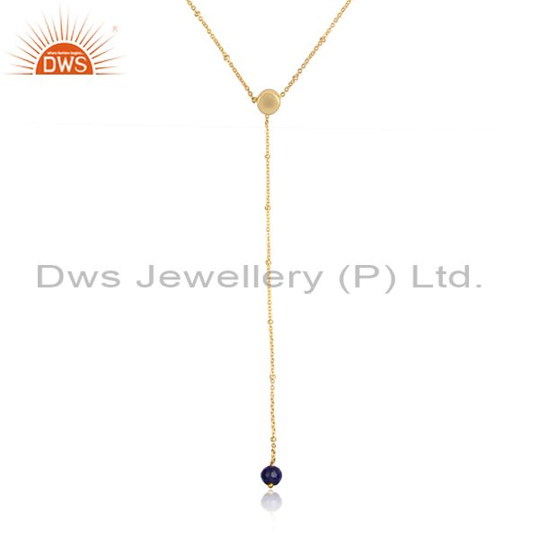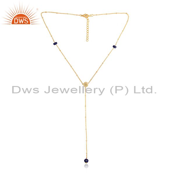 Lapis Set Handmade Brass Gold Classic Lariat Thread Necklace