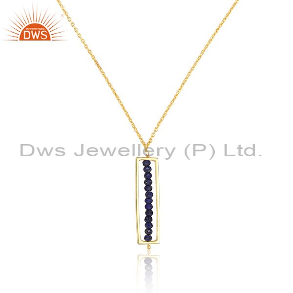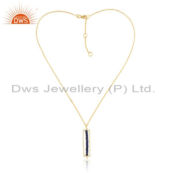 Lapis Set Rectangular Pendant And Gold On 925 Silver Chain