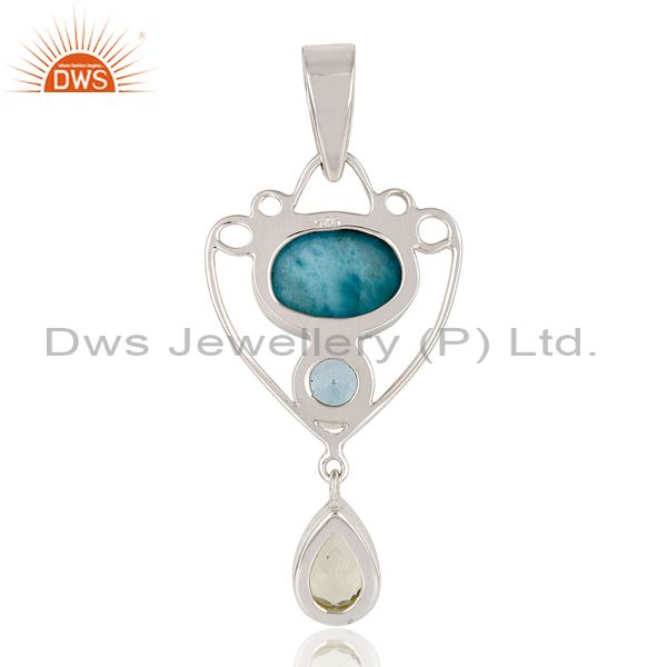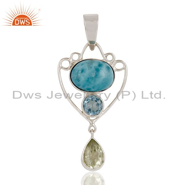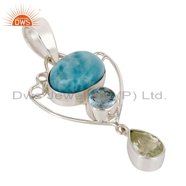 Larimar, Amethyst & Blue Topaz Sterling Silver Pendant