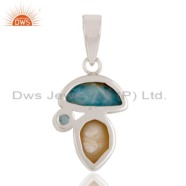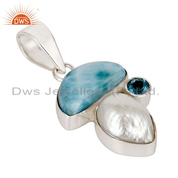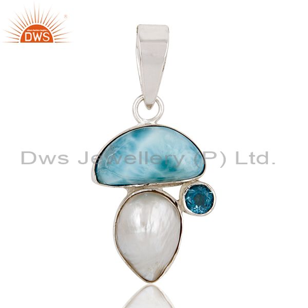 Larimar, Blue Topaz & Pearl 925 Sterling Silver Pendant