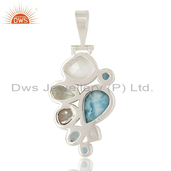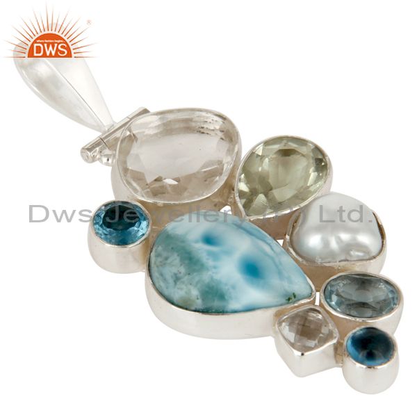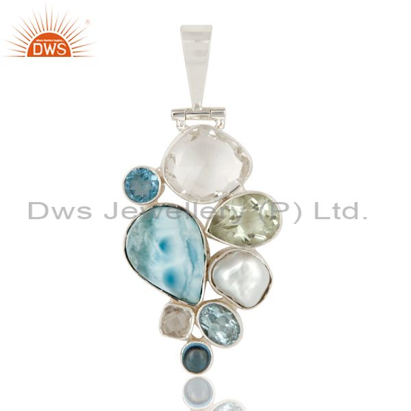 Larimar, Bt, Crystal, Amethyst And Fresj Water Pearl 925 Silver Pendant