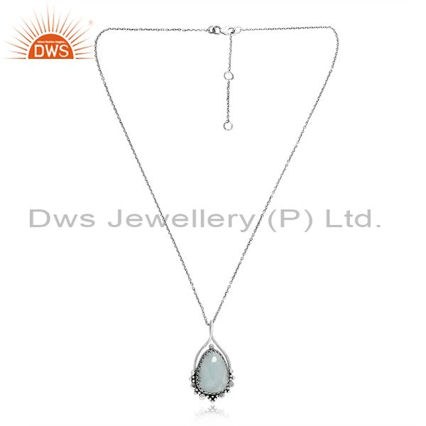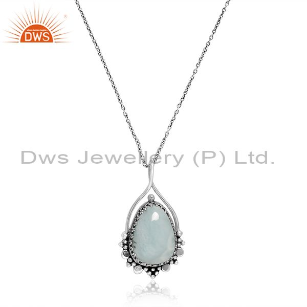 Larimar Gem With Oxidized Sterling Silver Necklace & Pendant