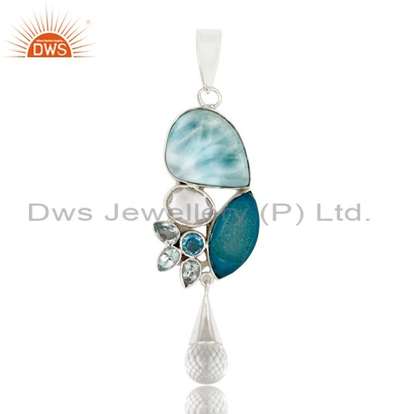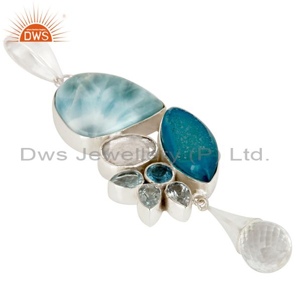 Larimar Multi Color 925 Sterling Silver Handmade Exclusive Pendant Jewelry