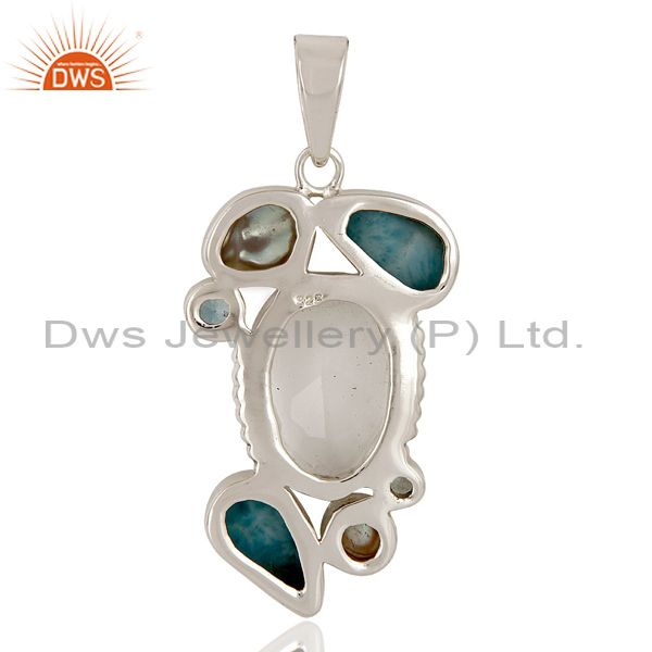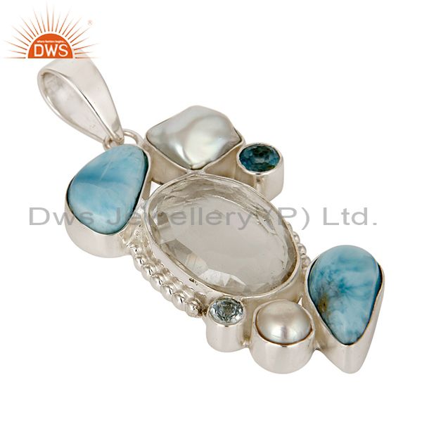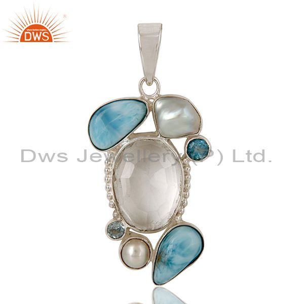 Larimar, Pearl & Blue Topaz 925 Sterling Silver Designer Pendant