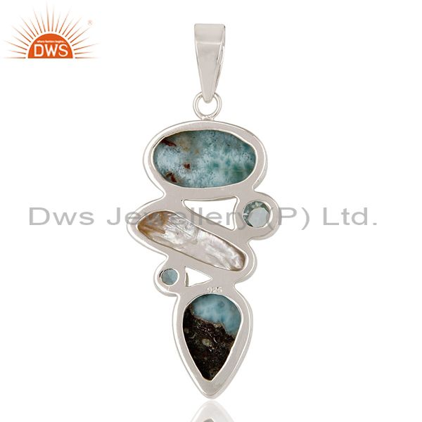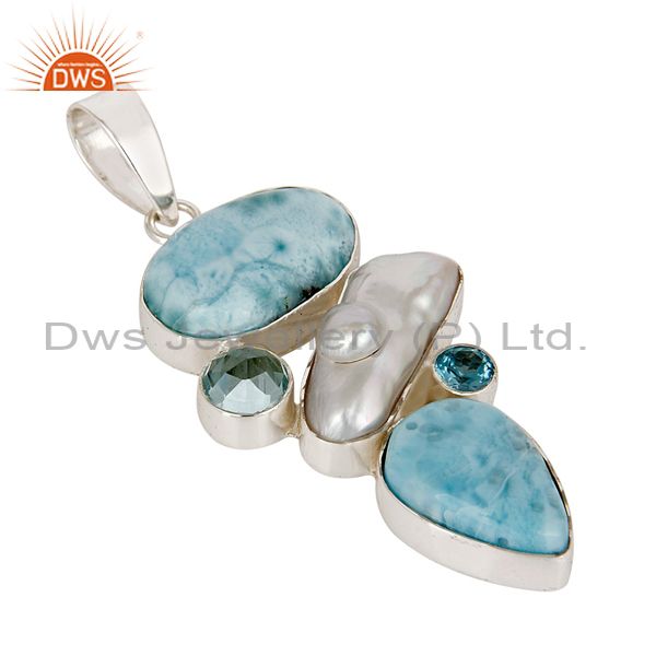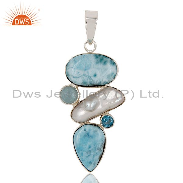 Larimar, Pearl & Blue Topaz 925 Sterling Silver Pendant