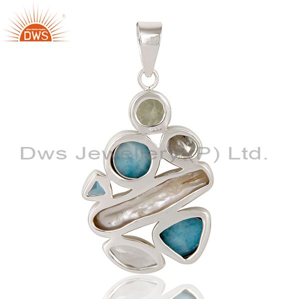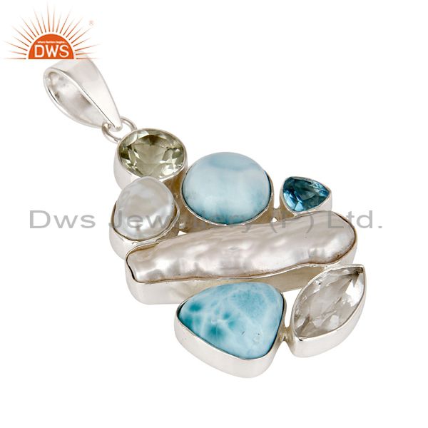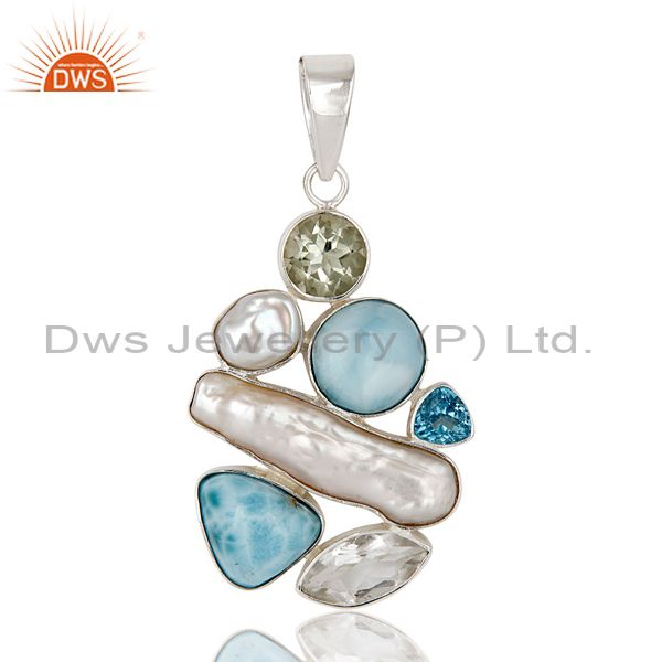 Larimar With Multi Color Stone 925 Sterling Silver Pendant