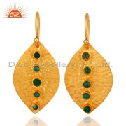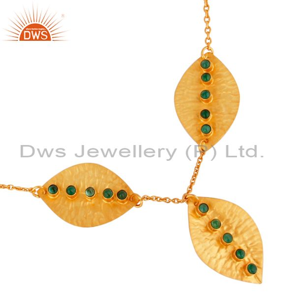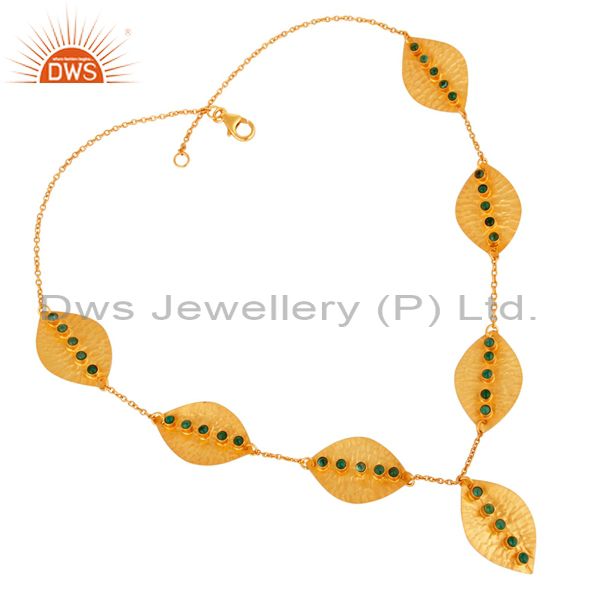 Leaf Design Gold Plated 925 Silver Emerald Gemstone Necklace Jewelry